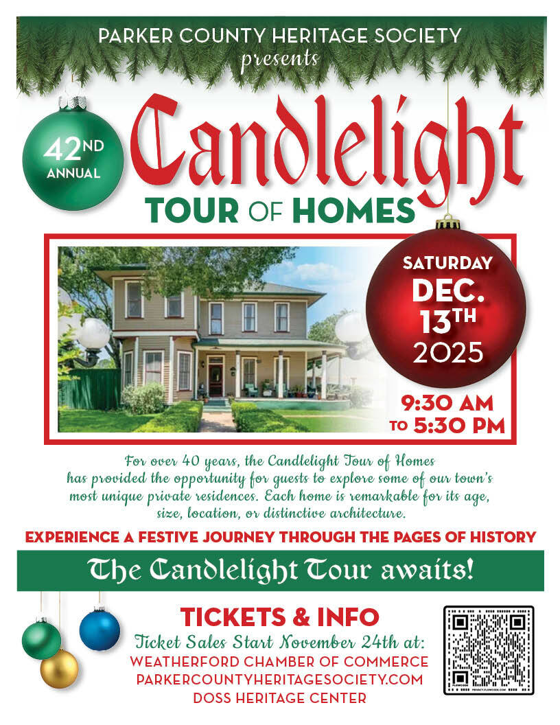 You can also purchase your ticket in person at the Doss Heritage Center starting December 2nd or at the Weatherford Chamber of Commerce starting November 24th.